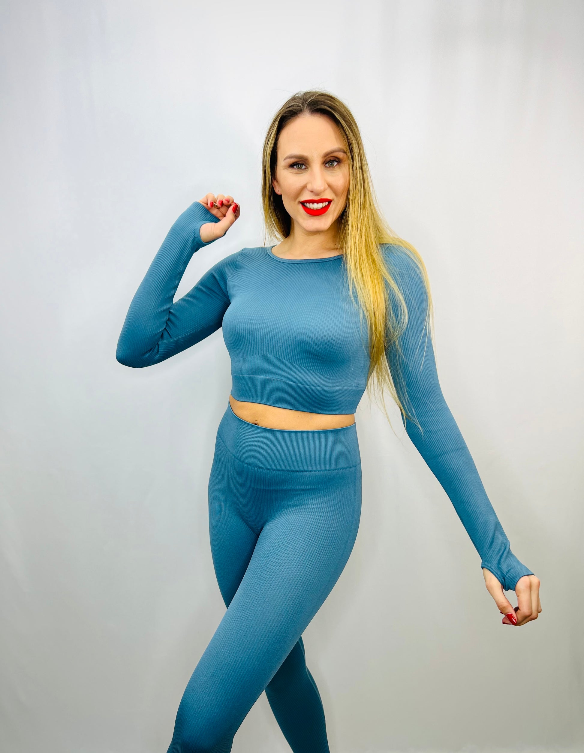 Maximize your workout with our gym set. This complete set includes high-waist leggings and a long sleeve crop top. Designed for optimal comfort and functionality, our gym set is perfect for any fitness routine. Stay cool and stylish while achieving your fitness goals.